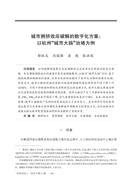 文章围绕拥挤效应的典型代表——交通拥堵展开,以杭州城市大脑为例,基于高德地图的拥堵延时指数,采用合成控制法探究了数字化治堵的效果及机制。结果显示,城市大脑的实施使得杭州的高峰拥堵程度在两年内平均下降了约14.94%。不同于传统增加供给或者限制需求的治堵方式,城市大脑主要通过矫正交通资源在时空维度的错配实现治堵。城市大脑还产生了显著的环保溢出效果,PM2.5、PM10排放水平明显下降,空气质量整体改善约7.78%。成本—收益分析表明,城市大脑建设所产生的社会收益远远大于成本投入。文章的研究结论表明通过数字化变革矫正资源错配是破解城市拥挤效应的有效方式,为加快推动形成超大特大城市智慧高效治理新体系提供了重要参考。