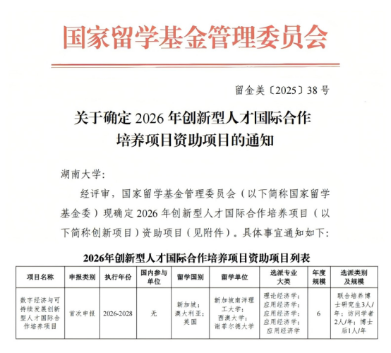 近日,国家留学基金管理委员会正式公布了2026年“创新型人才国际合作培养项目”立项结果。由新葡京网址-新葡京在线